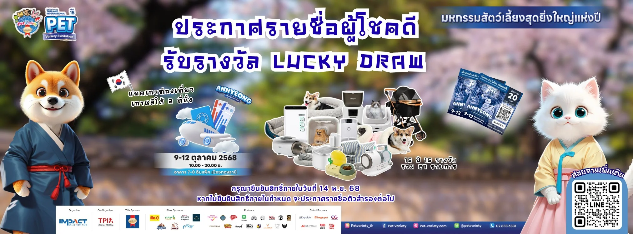 - ผู้โชคดีสามารถยืนยันสิทธิ์ได้ภายในวันที่ 14 พ.ย. 2568 หากไม่ได้ยืนยันสิทธิภายในระยะที่กำหนดตามข้างต้น จะถือว่าสละสิทธิ์ในการรับของรางวัล โดยสามารถยืนยันสิทธิได้ที่ LINE Official : @ petvariety หรือคลิก https://lin.ee/IpRtGOk