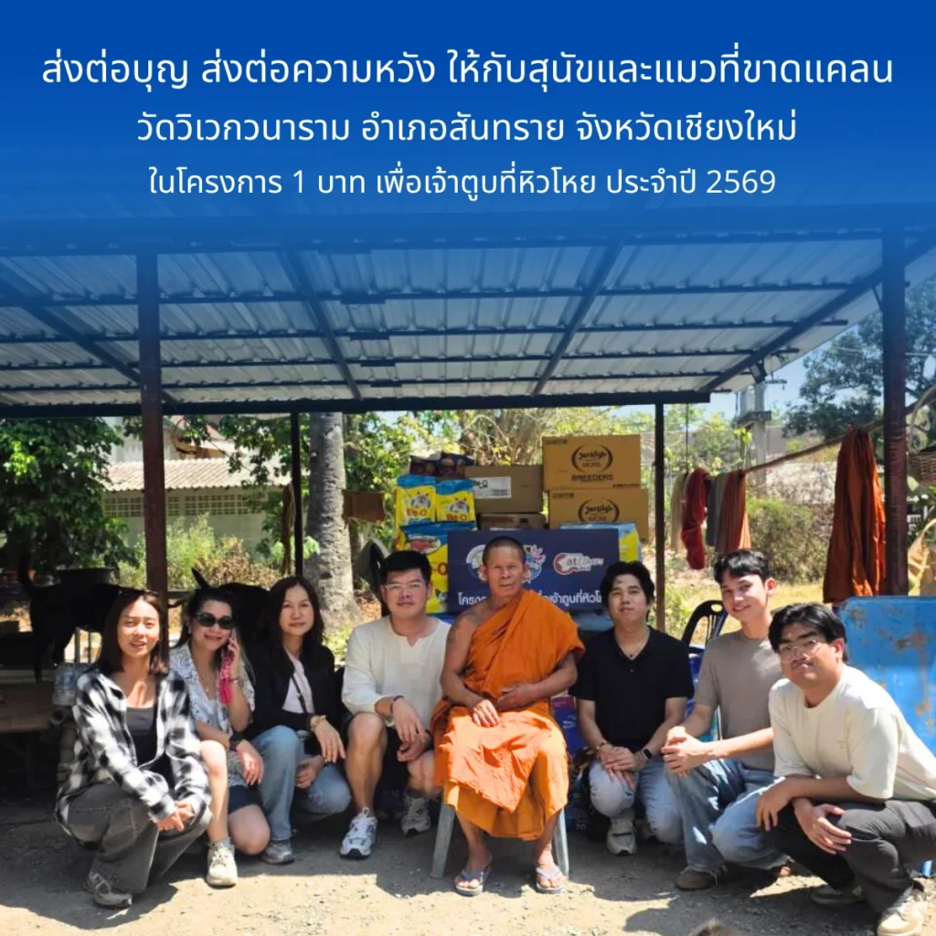 บริจาคให้กับสุนัขและแมว ณ วัดวิเวกวนาราม อำเภอสันทราย จังหวัดเชียงใหม่ ในโครงการ บาท เพื่อเจ้าตูบที่หิวโหย ประจำปี 2569