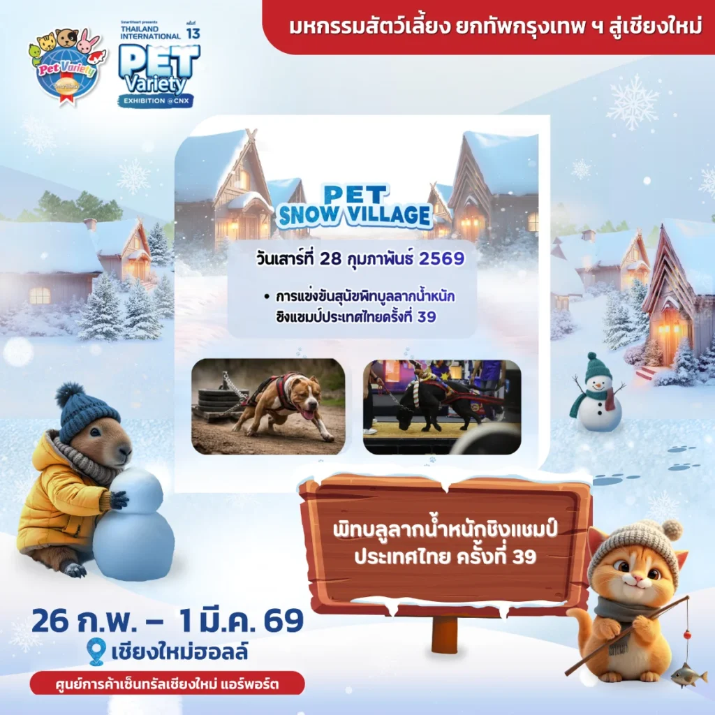 กิจกรรม CAT PARTY ON – PET VARIETY CAT FUN SHOW วันที่ 27 กุมภาพันธ์ 2026 สนาม Cat Zone งานประกวดแมวสายสนุก ที่ใครก็ลงได้ ไม่ต้องใช้ใบเพด อยากให้แมวได้ประสบการณ์ใหม่ อยากลองประกวด แต่ไม่อยากกดดัน อยากสนุกกับบรรยากาศน่ารักๆ แบบเชียงใหม่ Fun Show ตัวละเพียง 700 บาท เหมาะมากสำหรับมือใหม่ & แมวบ้าน บรรยากาศเป็นกันเอง สนุก อบอุ่น ได้ถ้วย / รางวัล / ความทรงจำดีๆ กลับบ้านแน่นอน Judge (กรรมการ) : Rapatporn Satirasilpin 5 Class Finals Kitten (3–6 เดือน) Junior (7–10 […]