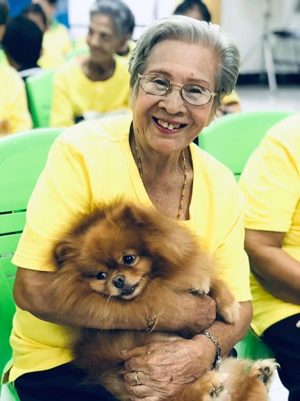 “Dog Therapy” event from the annual pet event, “SmartHeart presents Thailand International Dog Show 2019”, where the Exhibition Project team brought various dogs to show talent and created a joyful occasion, lifting old women’s hearts from loneliness at Tiwanon elderly home. They also brought necessary supplies and donations for the elderly.